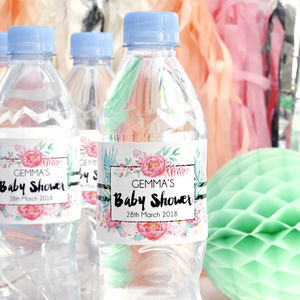 Personalised Baby Shower Floral Bottle Labels By Peach Blossom