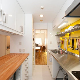 White Kitchen Cabinets Yellow Doors Stainless Steel Countertops