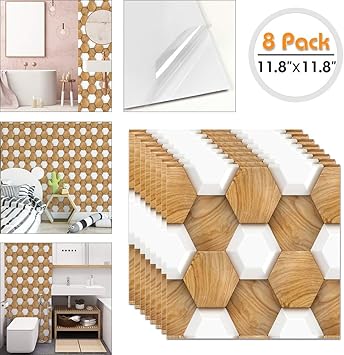 Yenhome 8pcs Waterproof Pvc Tile Sticker Self Adhesive Wallpaper