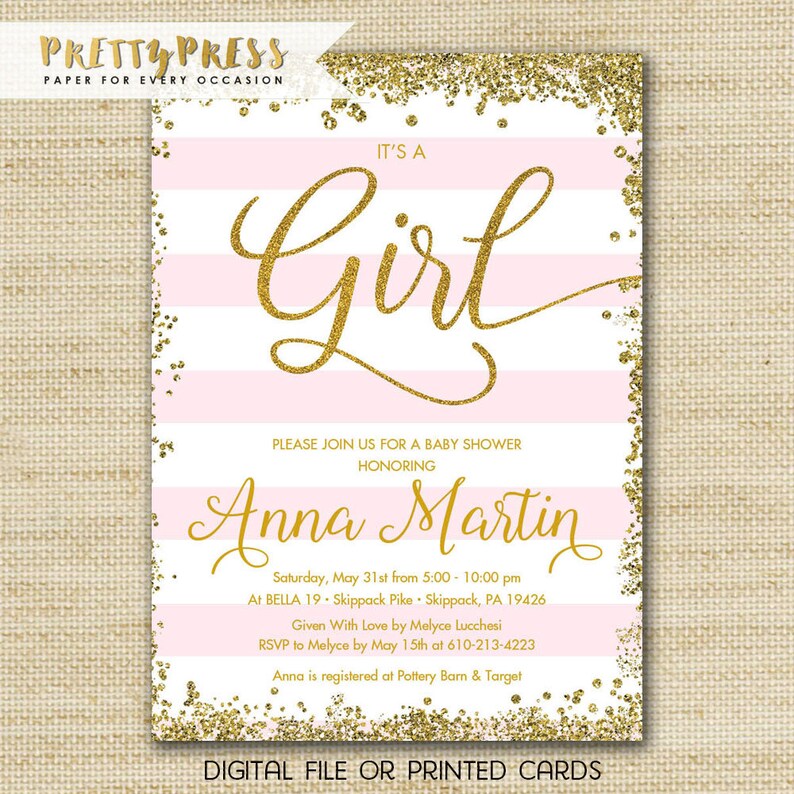 Blush Pink Gold Glitter Baby Shower Invitations Printed Baby Etsy