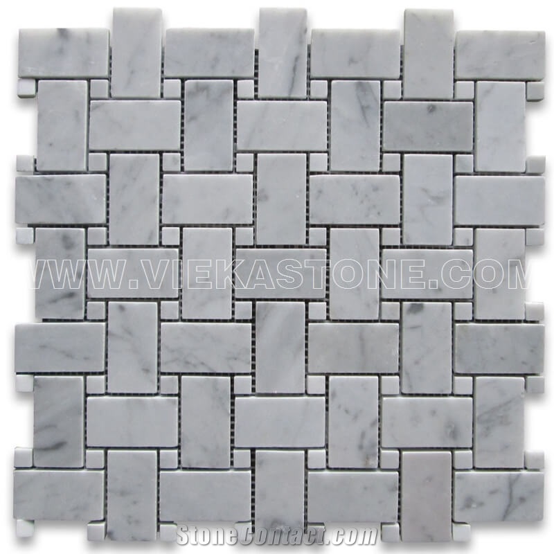 Get free 2 day shipping on qualified basketweave backsplash mosaic tile products or buy flooring department products today with buy online. Ivy hill tile mingle nero white carrara and thassos interlocking 12 78 in. Carrara white italian carrera marble basketweave mosaic tile wlight gray dots 1x2 honed venato bianco bathroom kitchen backsplash floor tile.