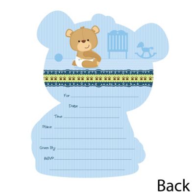 Baby Boy Teddy Bear Shaped Fill In Invitations Baby Shower