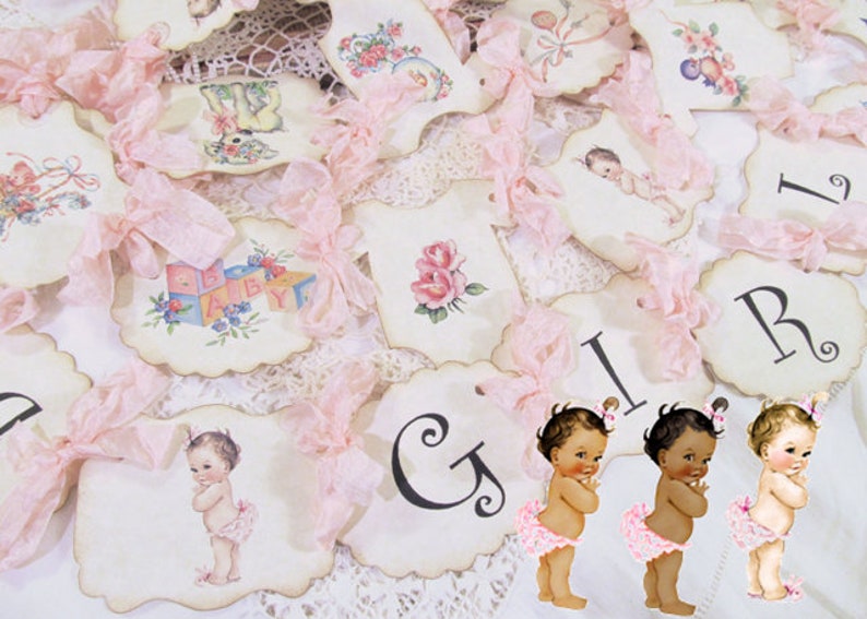 It S A Girl Baby Shower Banner Garland Vintage Style Etsy