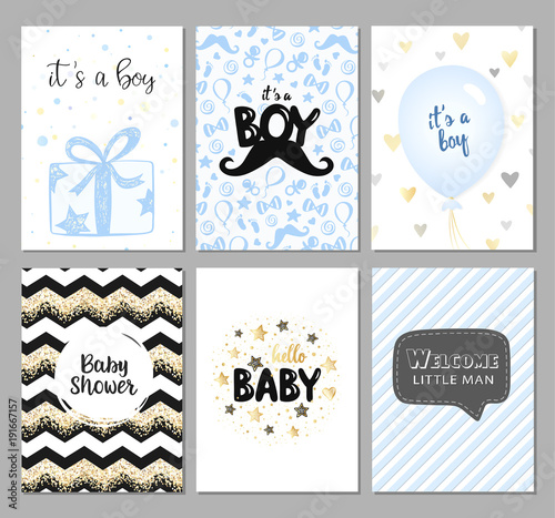 Vector Set Of Baby Shower Cards It S A Boy Card Hello Baby Card