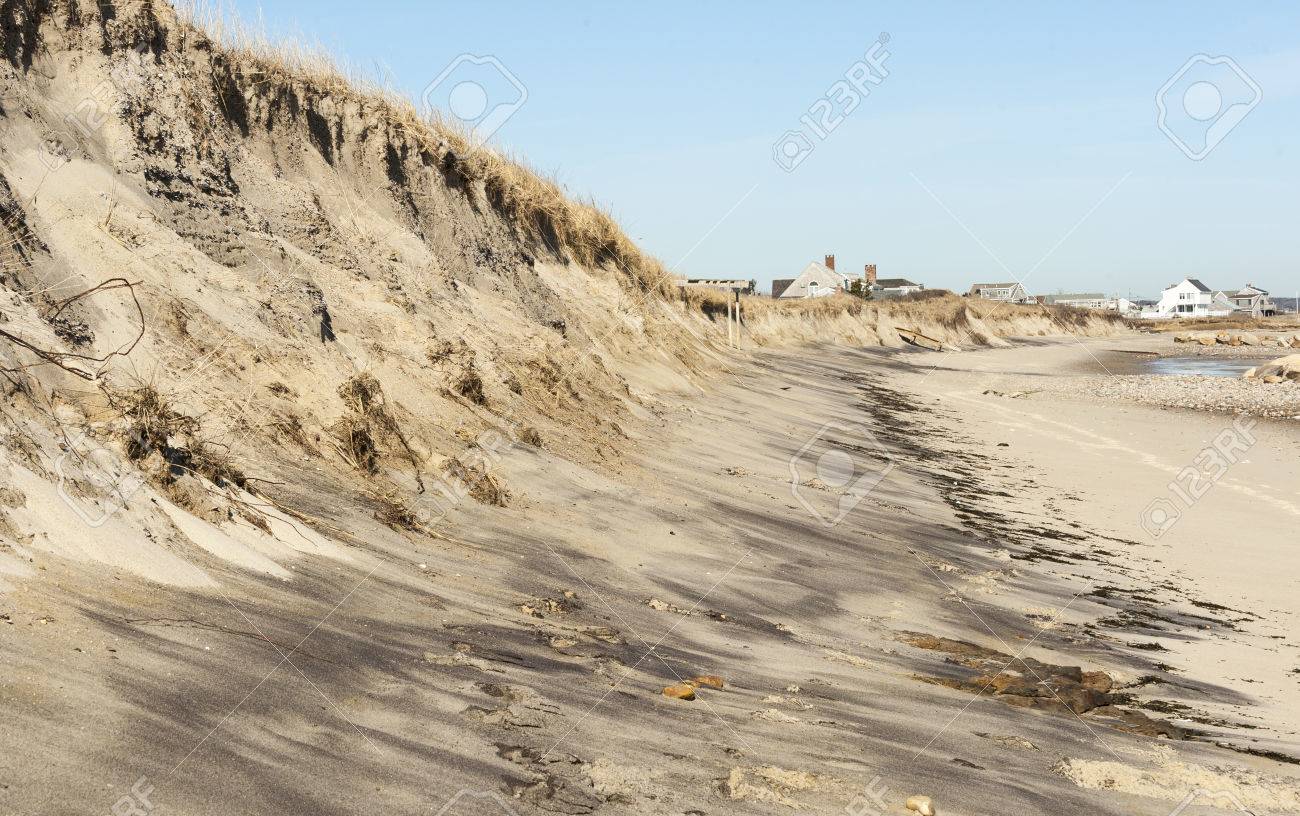 Dunes Along Shoreline Of Cape Cod Bay Chopped Off By Tides Stock