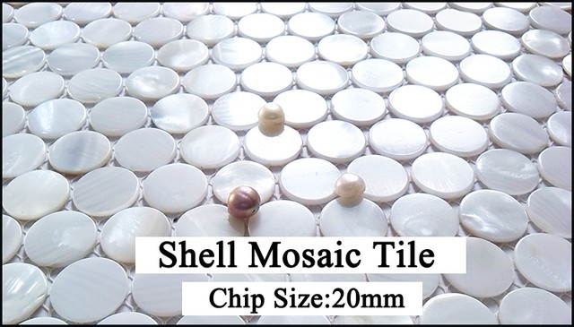 White Penny Round Shell Mosaic Tile Kitchen Backsplash Mother Of