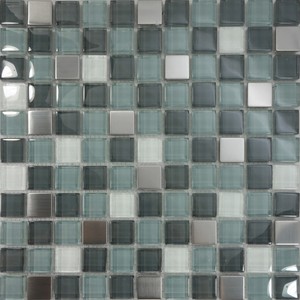 Stainless Steel Blue Glass Mosaic Tile Backsplash Kitchen Wall