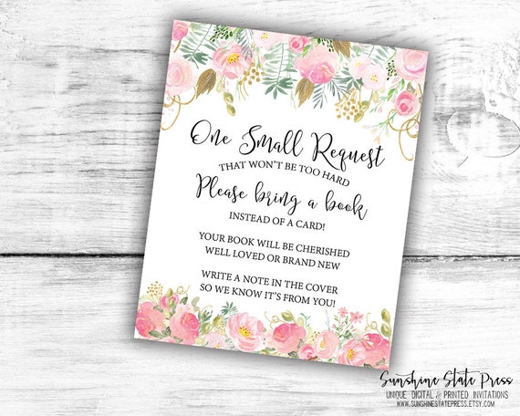 Girl Baby Shower Book Request Card Bring A Book Pink Peony Etsy