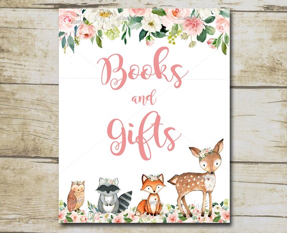 Girl Woodland Baby Shower Books And Gifts Sign Table Sign Etsy