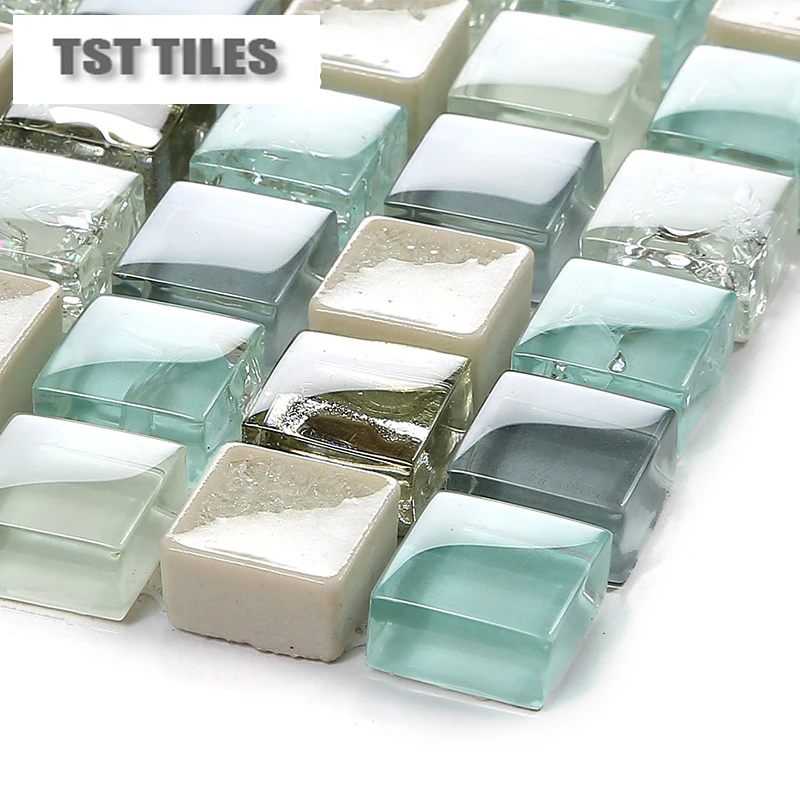 11 Sheets Lot Wholesale Sea Glass Tiles Mosaics Blue White Crackle