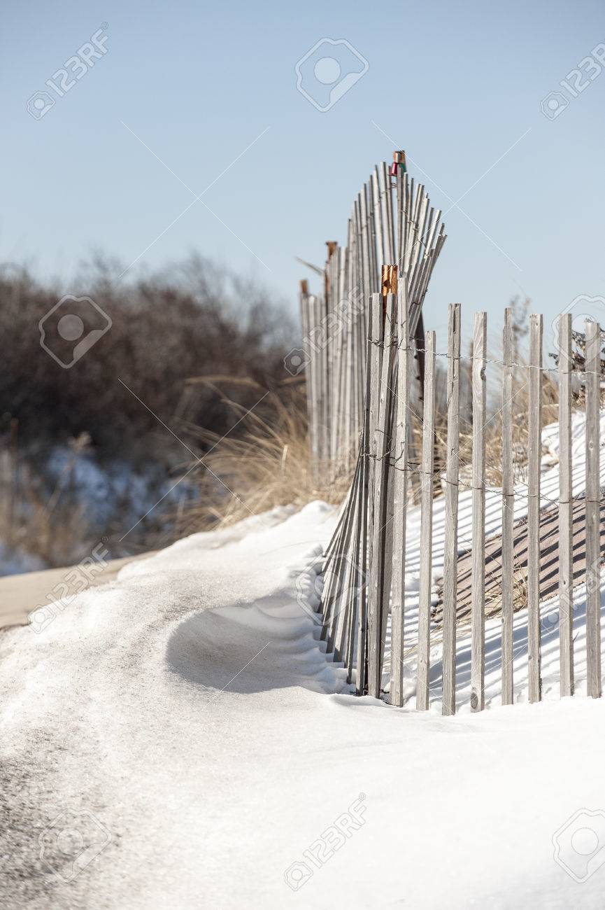Snow Fence Ready To Do Its Job During Winter In Cape Cod Sand